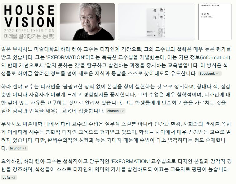 하라 켄야 선생님의 디자인 교육 접근법인 EX-FORMATION은 한국 조계종의 **화두 명상(간화선)**과 깊은 유사점을 지닌 매우 흥미로운 개념인데요. 이 접근법은 디자인 과제를 통해 학생들이 명상적 사고를 실천하도록 유도하는 교수법으로, 단순한 문제 해결 중심의 서양식 디자인 교육과는 다른 차원의 철학을 보여줍니다.