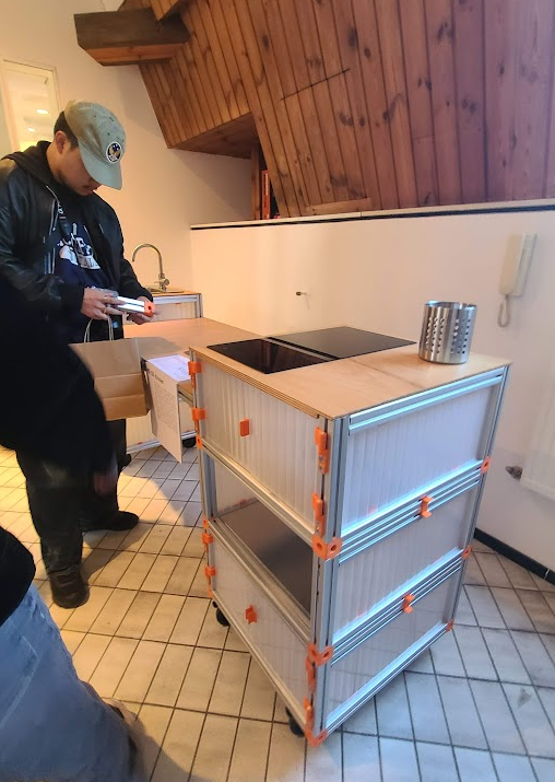 이 주방용품은 기존의 건축자재를 활용하여, 3D 프린팅 연결부로 아주 현명한 디자인 해결안을 제시하고 있어. 이사갈 때도 편하게 이사할 수 있고, 또 재료의 낭비도 심하지 않아서 친환경적이기도 하고, 또 자기 집의 여건에 맞추어 디자인 변경도 쉽게 가능한 구조인거지.